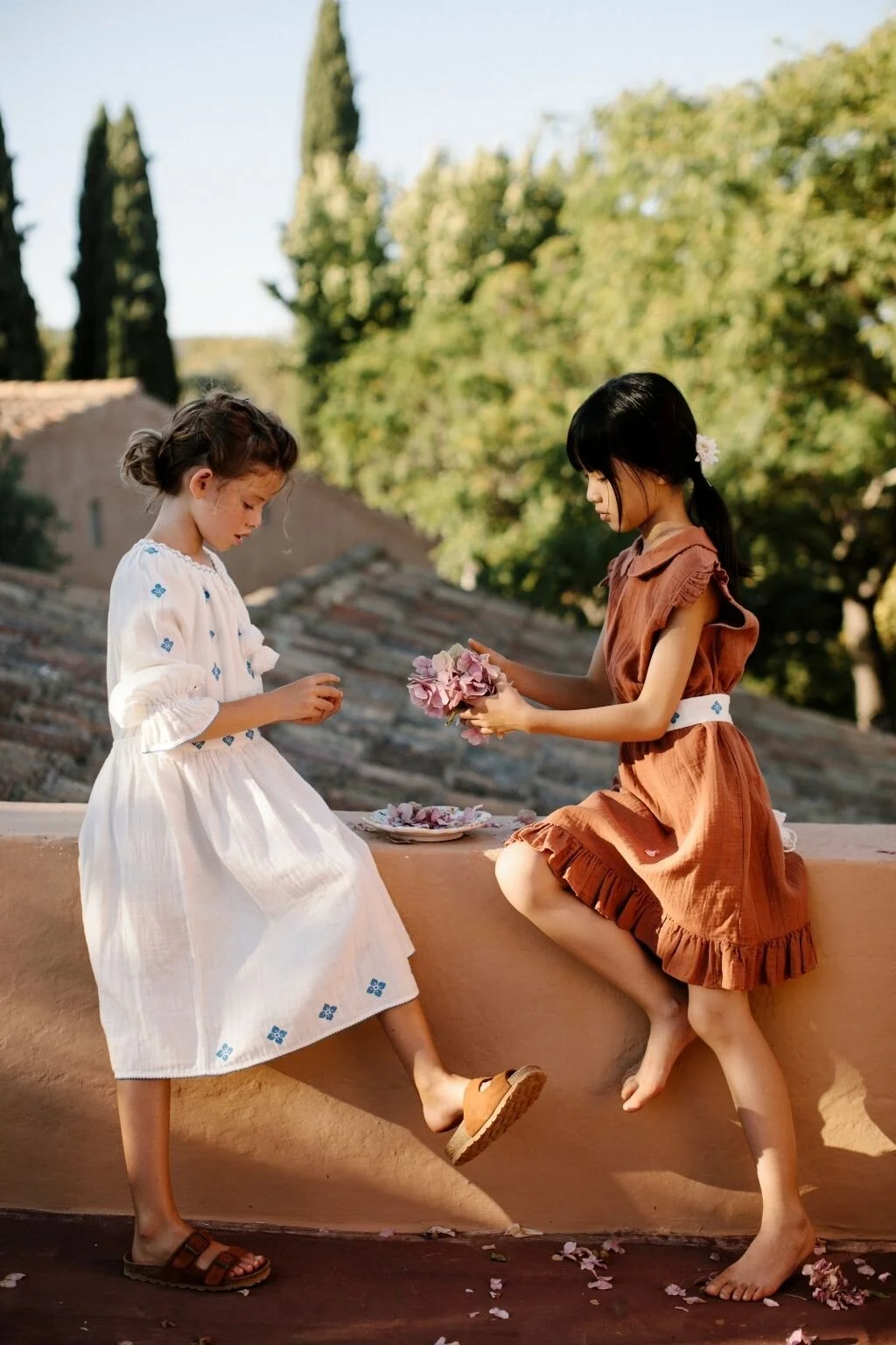 A connection between our signature muslin, printed and embroidered details together with fine knits. Inspired by the blooming spring in Portugal, our basic colors are strong and warm, which can also be found in our flower print. The seasons woven check brings you back in time and reminds you of the natural suroundings. Yet again we included smocked details and created a new embroidery line of selected styles. Our knits are well chosen and resume the quality of our SS21 collection.