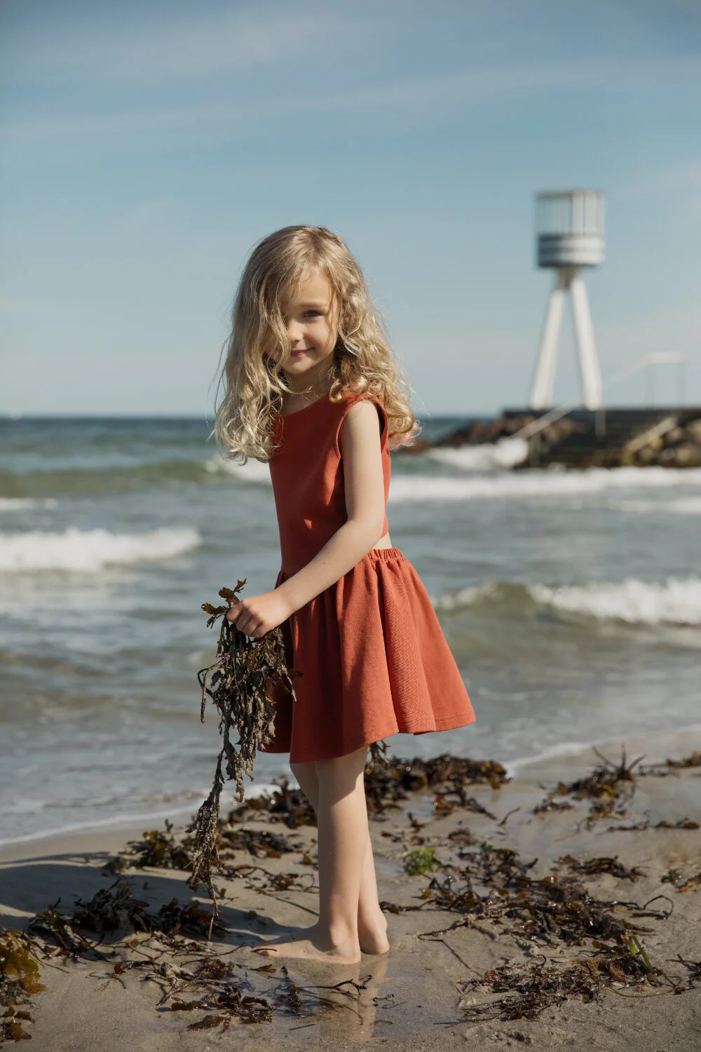 The ‘Happy-Go-Lucky” collection is inspired by designer Maja Akraberg’s memories of her first summer holiday in Bellevue Beach. Growing up in the Faroe Islands, Denmark was a distant exotic place and the poppy fields, blue skies and white beaches left a lasting impact. The three main colors in the collection, ocean, terra-cotta and fudge are by all means still earthy, but there’s variance throughout in the different materials that make mix and match tonal work very well.