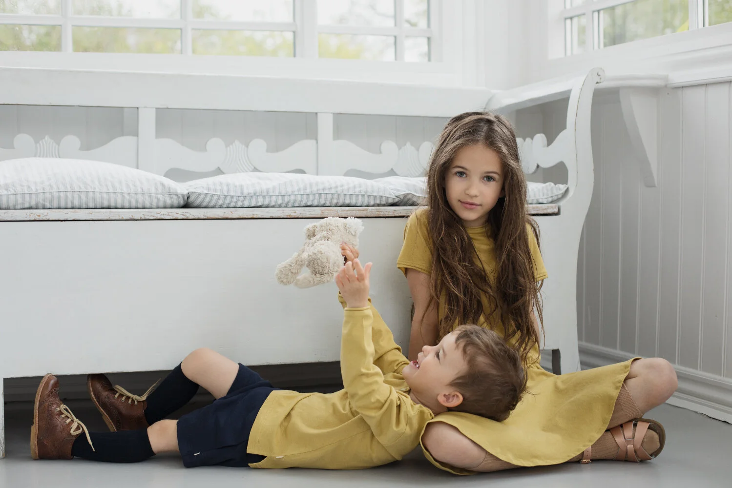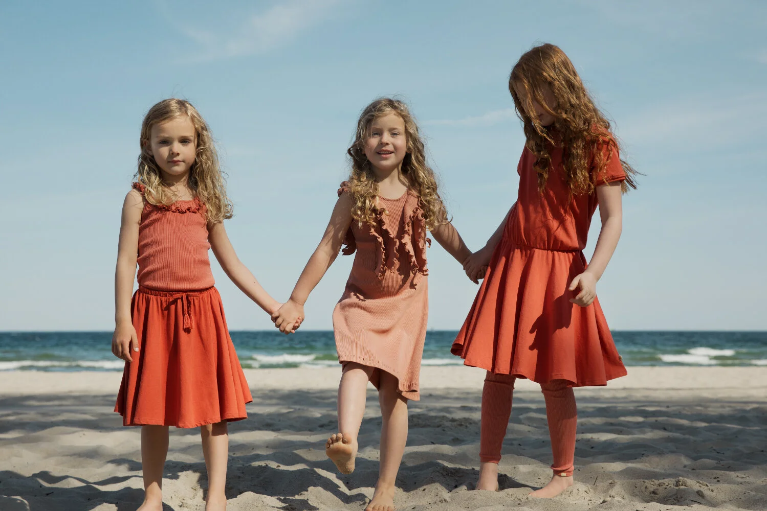 I find inspiration in my Nordic heritage and mychildhood memories. In the summer when I turned eight, I left the Faroe Islands for the first time withmy family. After 36 hours on a ferry over the Atlantic Ocean, we reached Denmark on a sunny afternoon. For the next two weeks we cruised along the beautiful Marguerite Route in our orange Morris Marina Coupé. We stopped at numerous beaches along the way, played at the red poppy fields and ate a lot of ice cream. To me, this was amagical time full of happy memories and, thus, the Happy-go-Lucky collection.