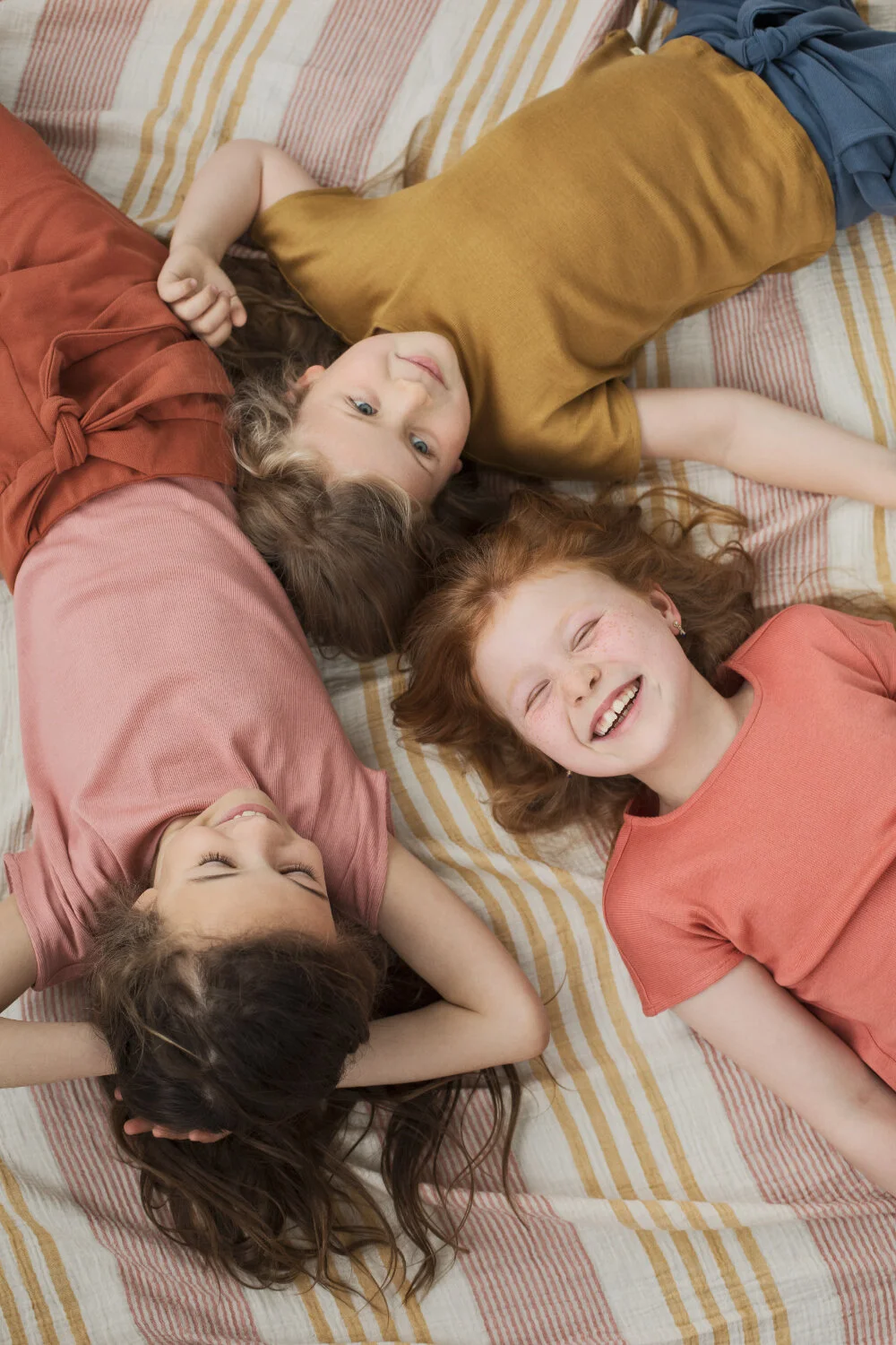 Our Happy-go-lucky 2020 collection is more colourful than our previous collections. The colours reflect the poppy flower fields that we passed on our Denmark cruise with red and yellow accents. We have added more blue ranging from forget-me-not-blue to clear summer sky and darker ocean shades. Our signature silk-seamless collection has been complimented with a few new styles and after repeated requests from retailers and customers, we have also added a few more silk styles for moms / grown-ups.